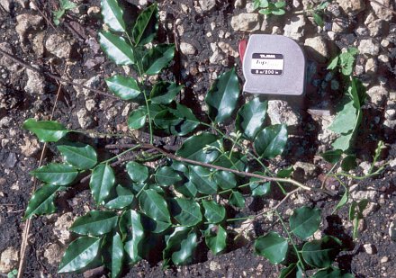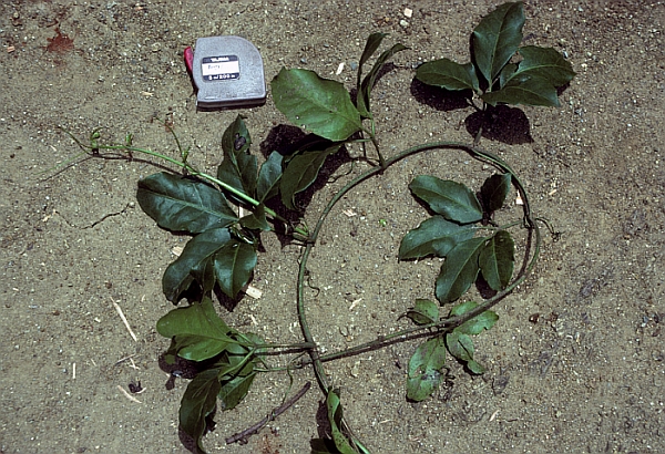 Atoni の建築は hau matani と hau aijao (hau は木) があれば済むほど、この二材がよく使われる。matani はマメ科シタン属の広葉樹インドカリン [Pterocarpus indicus] のことで、インドネシアでは angsana という。木部が赤いことから赤い木 kayu merah と通称される。堅く重い木で、地面に掘立てる柱にはこの木を使う。いっぽうの aijao はインドネシア名 cemara、一見、松と間違う外観をしているがモクマオウ科の樹木 [Casuarina eqnisetifolia]。柱以外の構造材全般に利用する。とくに丸い家屋の屋根裏を円環状にめぐるモヤ nono や小舞 takpani には靭性の高い素材が必要で、aijao の小枝や檳榔樹 pua [Areca catechu] の幹を割いたもの、トウ uwe などを束ねて使う。