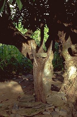 かってニキニキ王国には高さ8.5メートル、直径8メートルの巨大な吊鐘型のロポがあったと報告されている。それも修復されぬまま1980年代初頭に柱を残して倒壊してしまった。柱にささった石板の鼠返しには蜥蜴、鰐、馬、鳥などの彩色画が残されていて、ロポ建設に費やされたエネルギーの大きさを感じることができる。