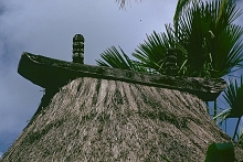 屋根:屋根には一般にチガヤ hun [Imperata cylindrica] をもちいる。海岸地帯では手間のかからないグバンヤシ tune [Corypha utan] やロンタルヤシ noe [Borassus flabellifer L.] の葉で屋根を覆うこともあるが、近隣の Belu地方や Roti島などからの影響ではないかとおもう。