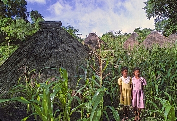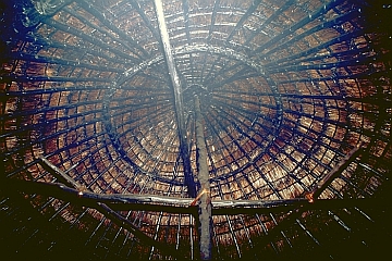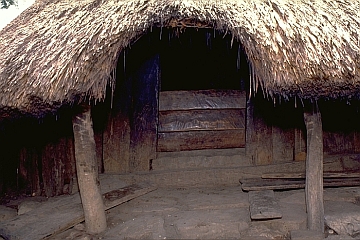 Memory of the NetherlandsAtoni族の建築事情は、1987年の私の調査時でも Müller の報告と基本的にかわらない。唯一例外は、Müller の紹介する丸い家 Ume Bubu のなかに、円板型の部材(鼠返し)を柱頭にのせているものがある点だ。構造的には穀倉 Lopo そのものと言ってよい。もしこれが本当に人の住まいだったとすれば、穀倉の周囲を壁で囲って、その床下に住んでいたことになる。スンバ島などでいまも見られる通り、高床構造の転用を物語る貴重な証拠になるだろう。