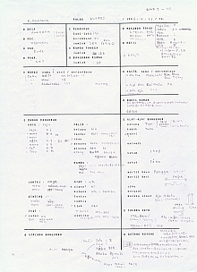 たくさんの家屋を調査する場合には、あらかじめ調査シートをつくり、それにあわせて内容を埋めてゆく方法がとられる。そこまでしなくても、家屋の建築年代や増改築の有無、屋根葺き替えの時期、それに部材名称とその材料、室名とその用途、家族構成と生業などは最低限確認しておかねばならない。