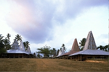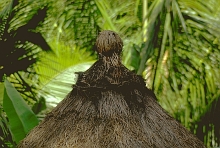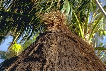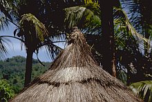 反対に、海岸地帯や小さな島嶼では、ヤシ以外の屋根葺き材は見あたらない。ヤシ科の植物では、サゴヤシ、ニッパヤシ、ロンタルヤシ(オウギヤシ)などの葉がよく利用される。比較的まとまって生育し、材料が入手しやすいことにくわえて、小葉の形状がある程度大きいことがその理由である。この点、どこにでもありそうなココヤシはあまり屋根に適した材料といえない。