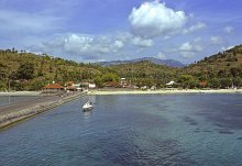 バリからのフェリーは針路を北東にとり、途中で南東に針路をかえる。大きく北を迂回。ロンボック島のLembar着は午後1時(東部時間の午後2時)。Lembarはいかにもロンボック島をおもわせる朴訥な風情の港。フェリーの操縦がヘタクソなためか、接岸までにずいぶん時間がかかり、その間、客室を降りた乗客たちはバスやトラックの隙間に荷物をならべて待つ。