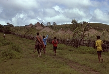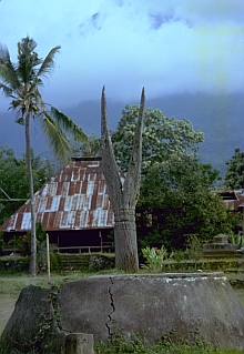 役所近くの(とはいえ約8km)村、Kambatatanaの見学。総数4つのカンポンを見てまわるが、未改修の建物は見つからなかった。村自体をすべて山上から移転した新村にちかい。親切に案内してくれた村人は別れぎわに金を要求。スンバ人の親切もバリ人の親切と変わらないくらいに観光化されたわけだ。