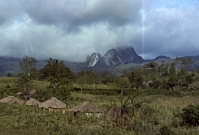 この露台で一夜をあかすか。さりとて、一夜をあかしたところでワインガプ行きの車があす来るという保証はない。それならば歩いてでもワインガプへ近づいたほうがよい。ワインガプまで約50kmだから、歩けば明日中には着くことができる。疲れてはいるがこうなった以上、他に手段がないのだ。隣村の Mondu までは約10km。急げば1時間半、俺は1時間で行ったことがある。などという時計も持たない村人の話を信じる気にはならないけれど、4kmくらいかな、とはかない期待をいだいて再び歩きはじめた。