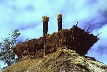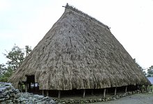 サヴ島の言葉はロティ島西方の Ndao島言葉と似ているという。吸音がある点でスンバワ島の Bima やフローレス島の Lio などとおなじだ。建築的にはどうか? ロティ島とは義兄弟、ティモール島の Belu とは親子、Lio の Jopu地方の Sao Banga型住居とは親戚、いずれも船の建築だ。