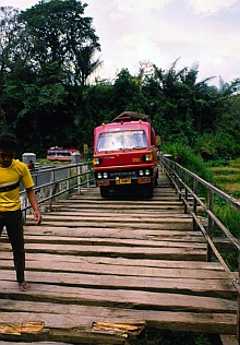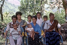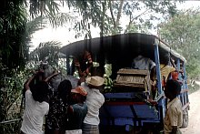 ところが、市役所の隣家で車をUターンさせようとしたところで、道路脇の水路にかかっていた橋は落ちていてすでになく、ルクマン氏運転の Chevlolet はみごとに前輪をこの溝にはめ込んでしまった。10人ほどの応援をうけてようやくの思いで車を戻す。結局、市長一行は出発せず、ルクマンは僕をトラックの出発するターミナルへ。トラックが満杯とみるや、そのまま僕を乗せて Sembalun へ向かう。東海岸沿いに北上、Aikmel から Obelobel まで2時間半。道は舗装されて快適。Obelobel から道悪く、岩石と土埃の急な道。ルクマンの普通自動車ではこれをパスできず、彼が送ってくれたのもここまで。後から来たトラックに乗る。