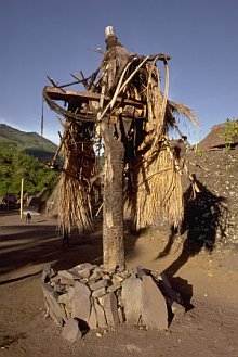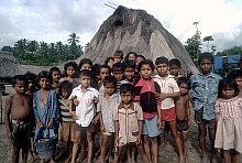 日本がどこにあるかも知らぬ Namata の老人(115歳だという年齢はあてにならないが、彼の孫もすでに40歳以上)に、日本の家はみんなセン(波板鉄板)の屋根でしょう?石の壁でしょう?と訊かれる。近代住宅のイメージはセメント壁、地床、セン葺きということでほぼ一致している。