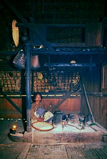 サヴ島の住居には家の後端に炉がある。けれども、たいていの家でこの炉は形骸だけ、あるいは、まったく姿を消している。調理は別棟の台所か、もしくは庇下にもうけた地上の炉。こういう点はだいたい東部インドネシアのどこの地方でも一致していて、家の中の炉は儀礼用の調理、出産、病気の時などにかぎって用いられる。火事を恐れた結果とも言うけれども、あかるい床下や別棟のほうが調理しやすいに決まっている。絶えず戦闘状態にあったとすれば話は別だが。