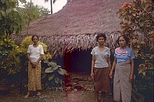 8時40分、Melolo着。市役所で報告。村長宛の書類をもらう。虚ろで物憂いこの役場で所在なく待ち、Pauまで同行の所員とともに出発。Pauは役場から4キロほどの距離にある。しかし、現在風に改造された慣習家屋ばかりで調査の対象にならない。旧王が死ぬ前に遺言したという伝統に則った慣習家屋が丘の上に建てられているというが、村長はすでにワインガプへ発ったあとで見学する機会はなかった。結局、炎天下を布の見学に歩いただけで、午後すごすごとワインガプへもどる。つぎつぎとワインガプへ繰り出す村の若者たちで、特別多いベモもこの日はすべて満員。道すがら追いこす村人たち、ある者は自転車に乗り、ある者はオートバイに乗り、すべてがワインガプへ向かう。