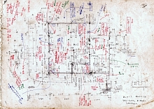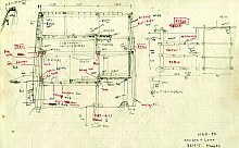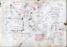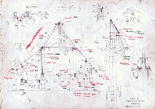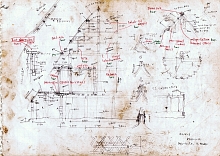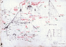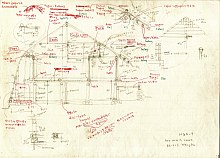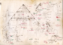 一日中、この家の周囲で図面採り。母屋、穀倉と配置図。