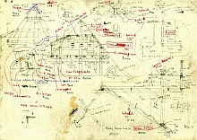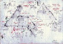 きょうも例の調査家屋へ行く。下痢の薬はどうした?と元気のよい主人。俺はまだ下痢で気分がすぐれない。薬を持ってきたかというのだ。部材の名前を訊いていると、見たことのない男が現れて、いつのまにか主人にかわって熱心に説明してくれる。これはありがたい、と彼に質問してゆくうちに、突然この男の言うのに「私はタバコを買わねばならない」。タバコなら僕に言わずとも店へ行けばよいではないか、とは言わずに、後であげるから、と僕。この聞きとりが終わると、家の主人「もう済んだのか?私と妻の写真を撮ってくれないか?」