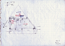 山から見て古い家並みの奇麗に整った所が二箇所あり、ひとつは昨日家を見た一画、残ったもう一箇所で調査をはじめる。アマ・サエン(サエンの父)の家は、1920年代の建設。まとまりはよいが、細部で多少不明な点あり。架構に無理があるのか、家屋は東と南にいくらか傾いている。
