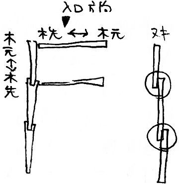 Mollo や Miomaffo の住居と Amanuban のものとの相違は主柱上の梁の方向である。はじめ梁を桁行方向に配する Mollo型に対して、Amanuban型は梁行方向にのる。