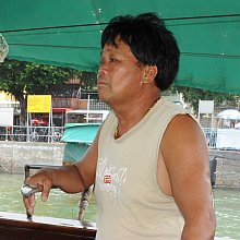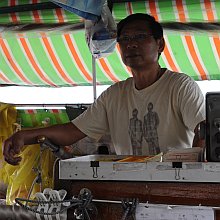 この地で60年、アバディーン(香港仔)の移り変わりを知る生証人。船上で生まれる。比較的大きな家船は当時からたいていエンジンを載せていたという。おかげで漁撈活動の範囲は飛躍的にひろがったし、発電機も利用できた。およそ70年前に仲人の紹介で妻と結婚。そのときに払った婚資は100~300香港ドルだった。その妻とのあいだに7男3女(うち3人はすでに死亡)をもうけ、いまは10人の孫がいる。