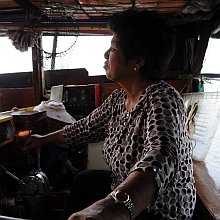 水産会社で働いていたとき船乗りの夫(68)と知り合い、26歳で結婚、4人の子どもがいる。子ども達は陸地のアパートで暮らし、夫はおなじ湾にいる別の船で暮らす。観光客の案内をして日銭をかせぎながら、彼女はこの船でひとり寝泊まりしている。朝食はたいていファーストフード。夕食だけは夫の船と寄せあい、彼女の手料理を一緒に食べる毎日。水は公園の水道からタンクに汲んでいる。もともと家船育ちとはいうものの、船で暮らすのはトラック野郎の船乗り・女性版にちかい感覚か。