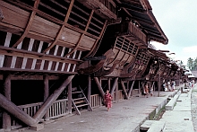 イフガオ族よりはるかに規模の大きなフローレス島リオ族の家屋も基本構造は一緒である。リオでは木の柱のかわりに石柱が利用されていることもある (図㉑) 。サダン・トラジャ族の家屋にある心の御柱、アリリ・ポシ(臍の柱)もかつては石柱の例があったという。男性のシンボルということだ。トラジャもリオも、先述したばかりのスンバ島も、巨石文化の名残りが芬々とただよう土地柄である。