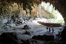 ある男がこの島の奥地を探検しようとして装備をととのえ村を旅立ったことがあるそうだ。何日か山歩きののち、食事の支度をしようと火をおこし、油を注いだ鍋を火にかけておいた。薪が足りないというのでしばらく火元をはなれて戻ってきてみると、どこからあらわれたものか、見あげるほどの大男が鍋を片手に煮え立った油を飲み干しているところであった。大男は呆然とたたずむ彼の姿に気がつくと、やにわに鍋を放り出し森のなかに駆け去った。彼のほうも大慌てで取るものもとりあえず村に逃げ帰ったという。山奥で大男が人間の頭をかじっていたという話もある。